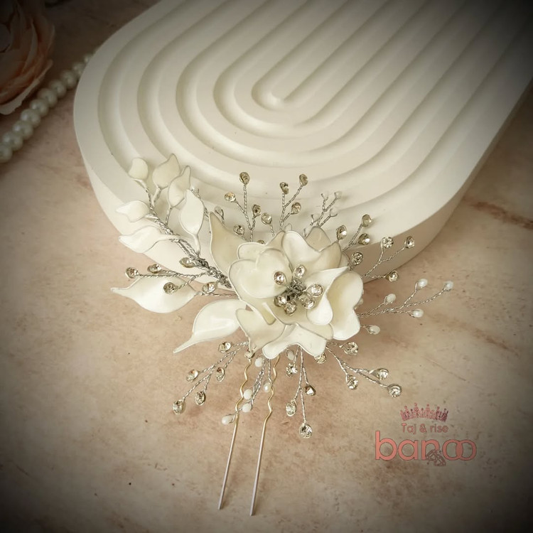 سنجاق شنیون زنانه با گلهای شیشه ای منعطف ونگین اتریشی