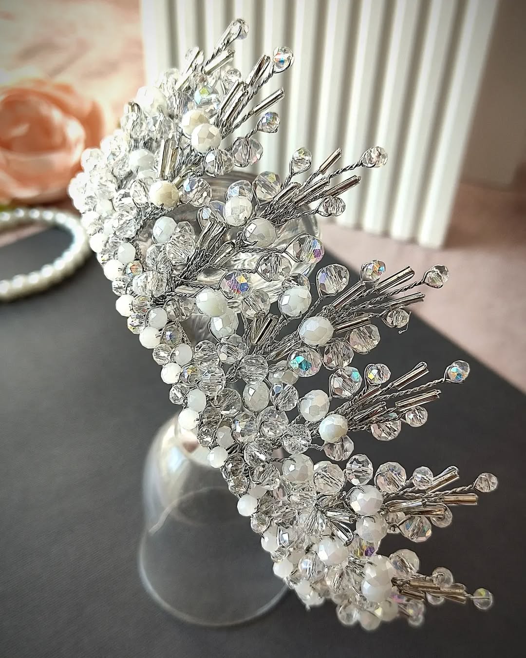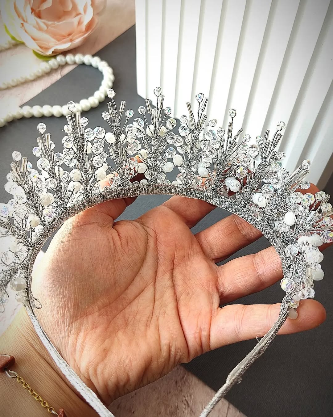 جزئیات تاج زیبا رو از نزدیک ببینید ولذت ببرید @taj.rise.banoo این تاج بسیار سبکه وشاین زیبایی داره با ملیله، کریستال شیشه ای، مات، لوستری ساخته شده ارتفاع این تاج در مرکز کار ۵/۵سانته ارتفاع ورنگ تاج قابل تغییره مناسب عروس، همراه عروس وحنابندون وفرمالیته س پست کار با نوار تمیزکاری شده وجای حلقه داره که با هر اندازه سری قابل تنظیم باشه مرسی که با حمایتتون به دیده شدنمون کمک میکنین بهای تاج زیبا با احترام: @taj.rise.banoo . . . . . . . . . . . . . . . . . . .