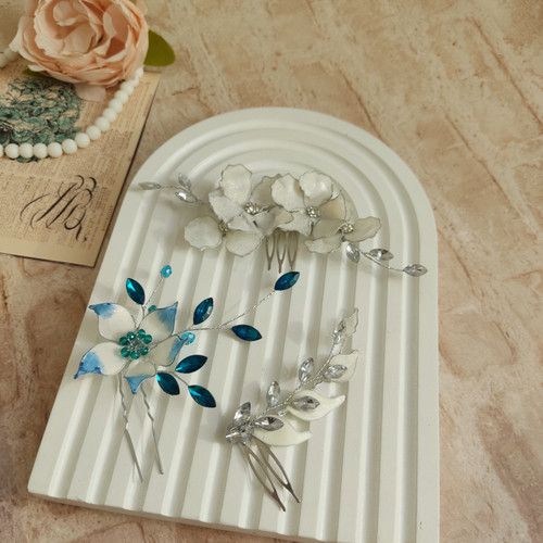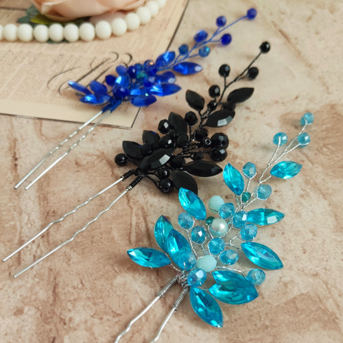 سنجاق شنیون زنانه با گلهای شیشه ای منعطف ونگین اتریشی