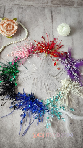 سنجاق شنیون پردار زنانه با مارکیز رزین