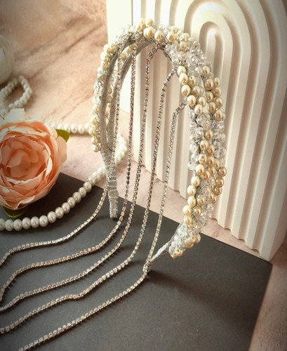 سربند زنانه خورشیدی با مروارید های باکیفیت وآویزهای مروارید