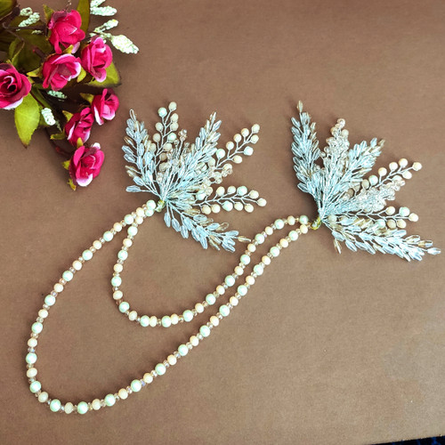 بغلسری موی زنانه، دوطرفه با تزیین کریستال، مروارید، گندمی
